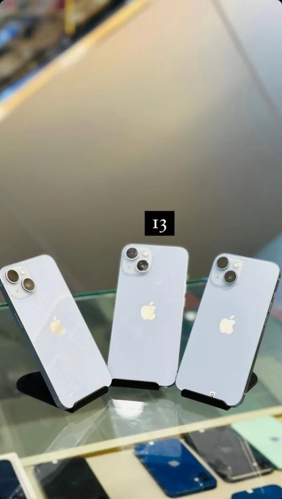 Multiple iPhone 12 models in various colours, including blue, black, white, and red.
